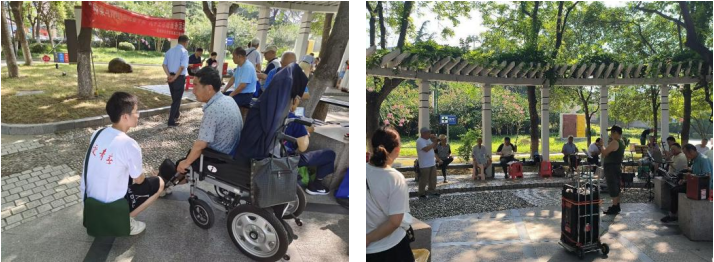 实践团关注老人们的文化生活品质。成员实地走访东闸新村社区、古溪镇横垛社区,将非遗淮剧带入社区老年人文化活动,在公园开展淮剧沙龙。活动中,志愿者与社区老人齐聚弹唱淮剧,场上节目精彩纷呈,场下掌声络绎不绝,充满了欢乐气氛。期间,志愿者与留守老人亲切交谈,倾听他们内心,了解老年人日常生活及身体状况,通过面对面的沟通与陪伴,及时发现和帮助解决问题。