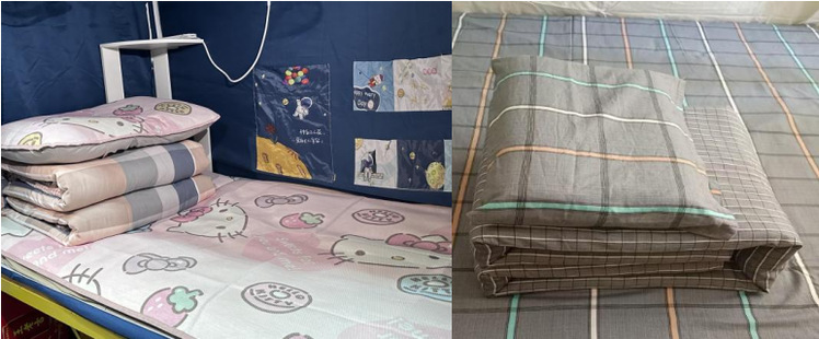 内务整理展风采。出门看队伍,进门看内务,规范整洁的内务秩序是军人良好作风养成的基本体现。9月15日晚,信息工程乐鱼(中国)组织开展新生内务整理训练。叠军被训练中,退役大学生士兵军训教官梁大龙耐心传授“豆腐块”叠军被基本要领:铺平压实,横向三折;同学们认真观摩,反复练习,终于叠出了规范的“豆腐块”军被。同学们认真打扫寝室,整齐摆放脸盆、水瓶、鞋子等生活用品。内务整理活动培养了同学们良好的生活习惯,增强了组织纪律性。