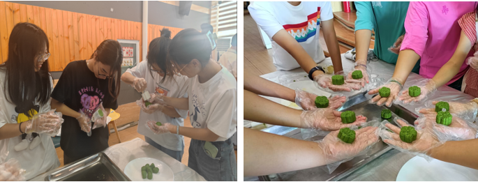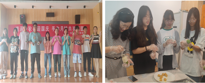 活动现场,餐厅工作人员将制作月饼的模具、饼皮、馅料等材料准备妥当,并详细指导月饼的制作过程。同学们动手揉饼皮、加馅料、包月饼、放入模具按压成型,经过近一小时的制作,一个个小巧玲珑的月饼呈现在每个人的手中。